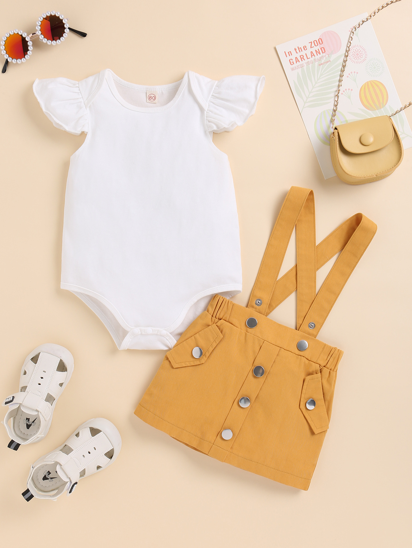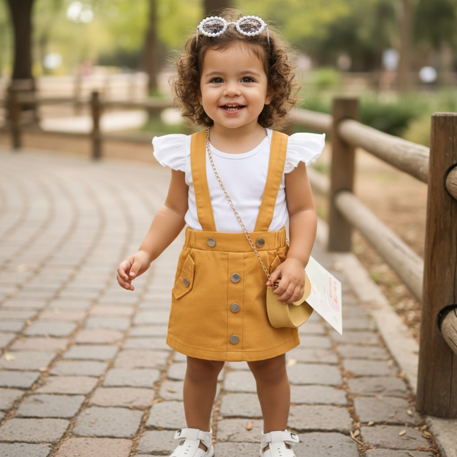 Conjunto 2 Prendas Jardinera Mostaza + Body CJ061