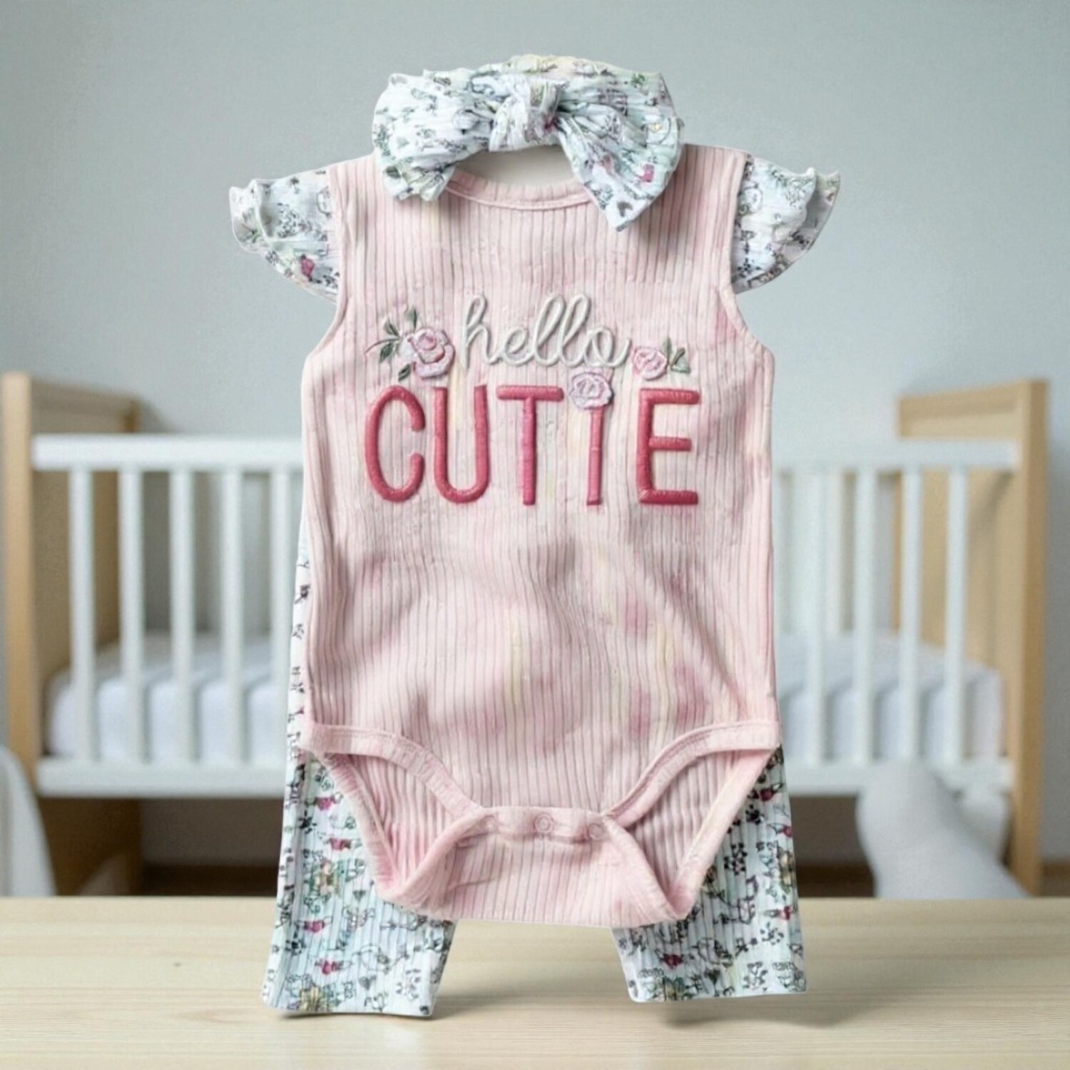 Conjunto 3 Prendas Body Pantalon Lazo Bordado CJ140