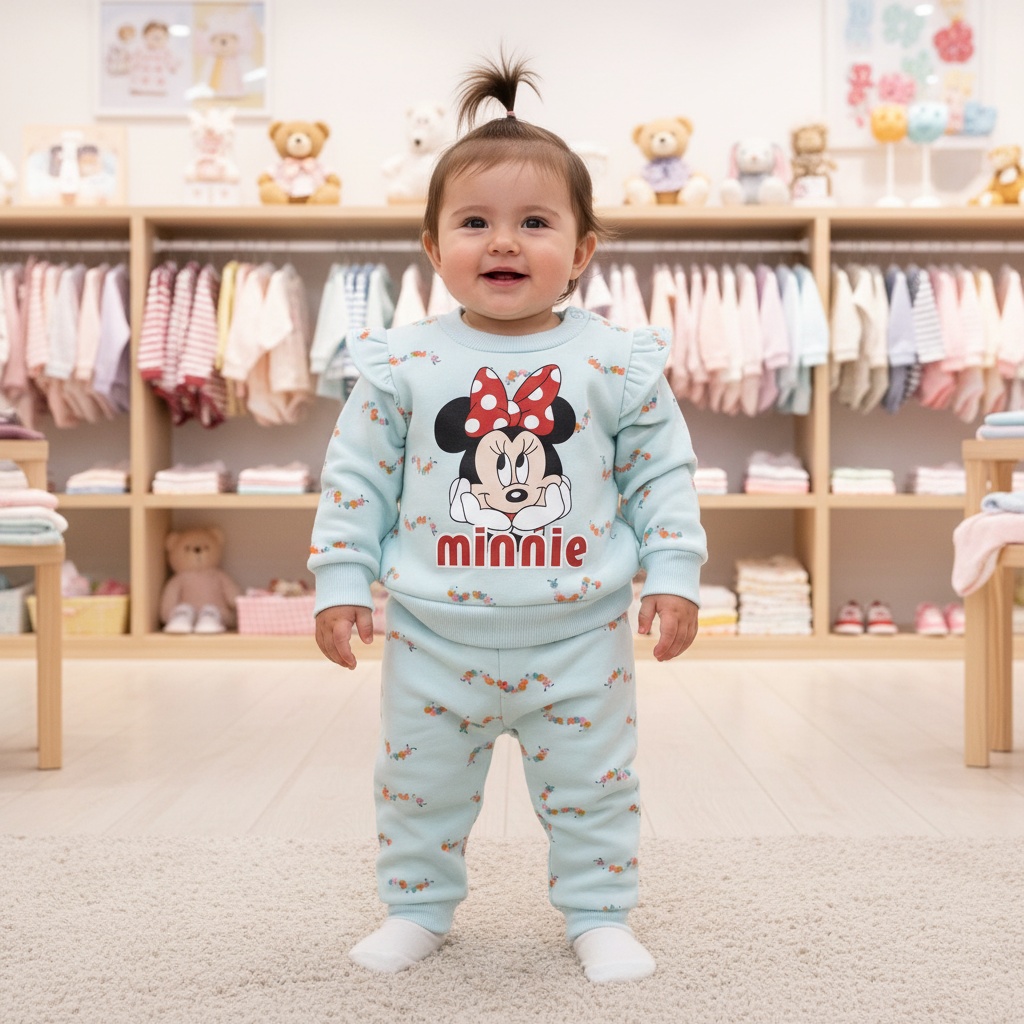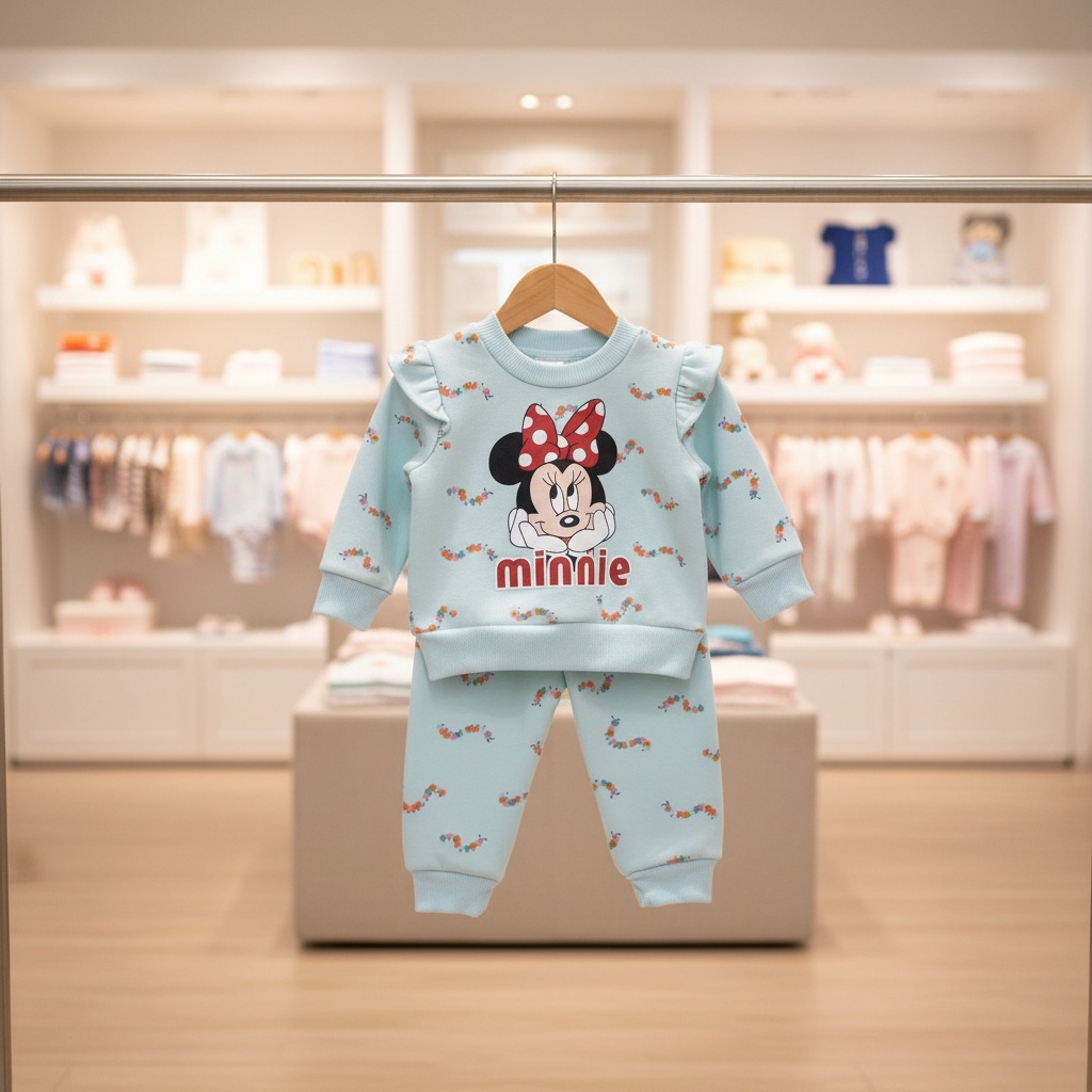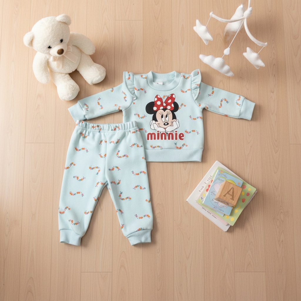Conjunto De 2 Prendas Forraditos Polera Manga Larga + Buzo Celeste Estampado CJ197