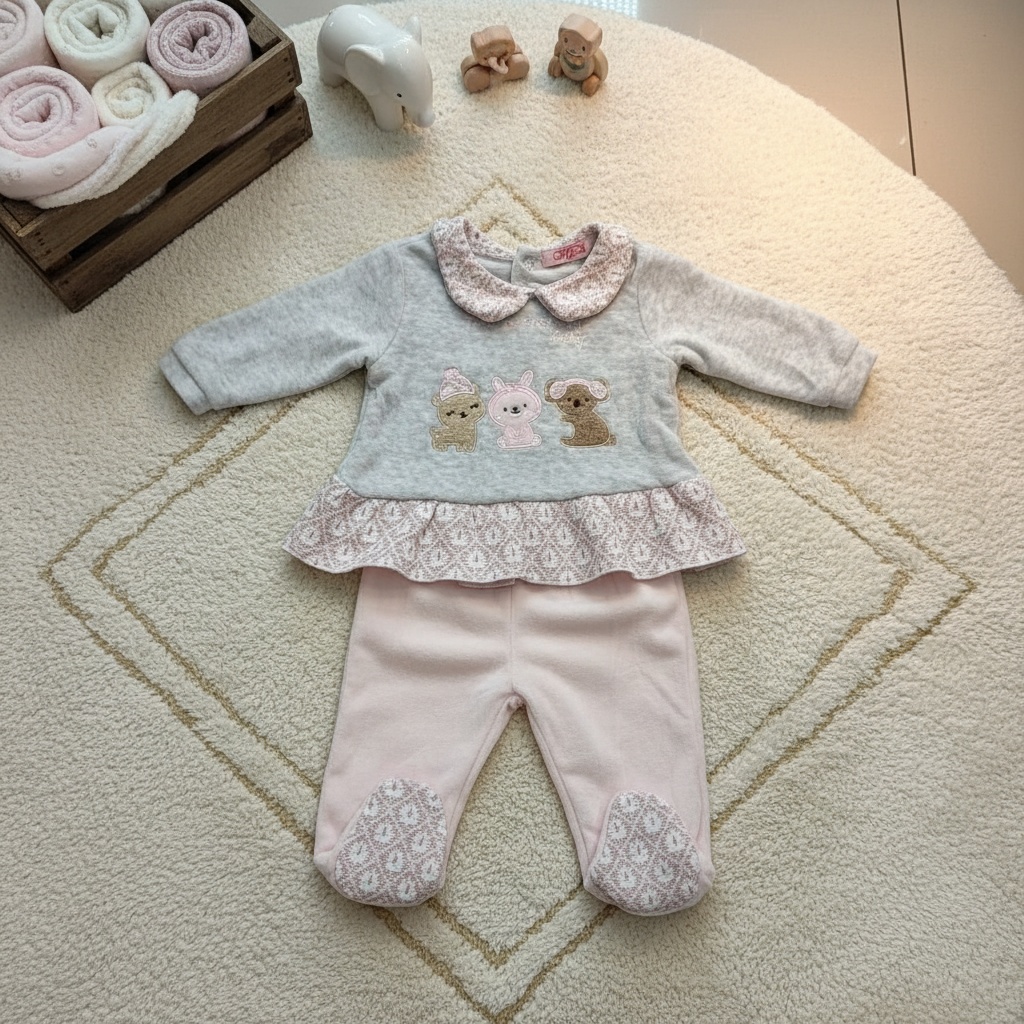 Conjunto De 2 Prendas Polera Manga Larga Bordada + Pantalón De Patitas Plush CJ201