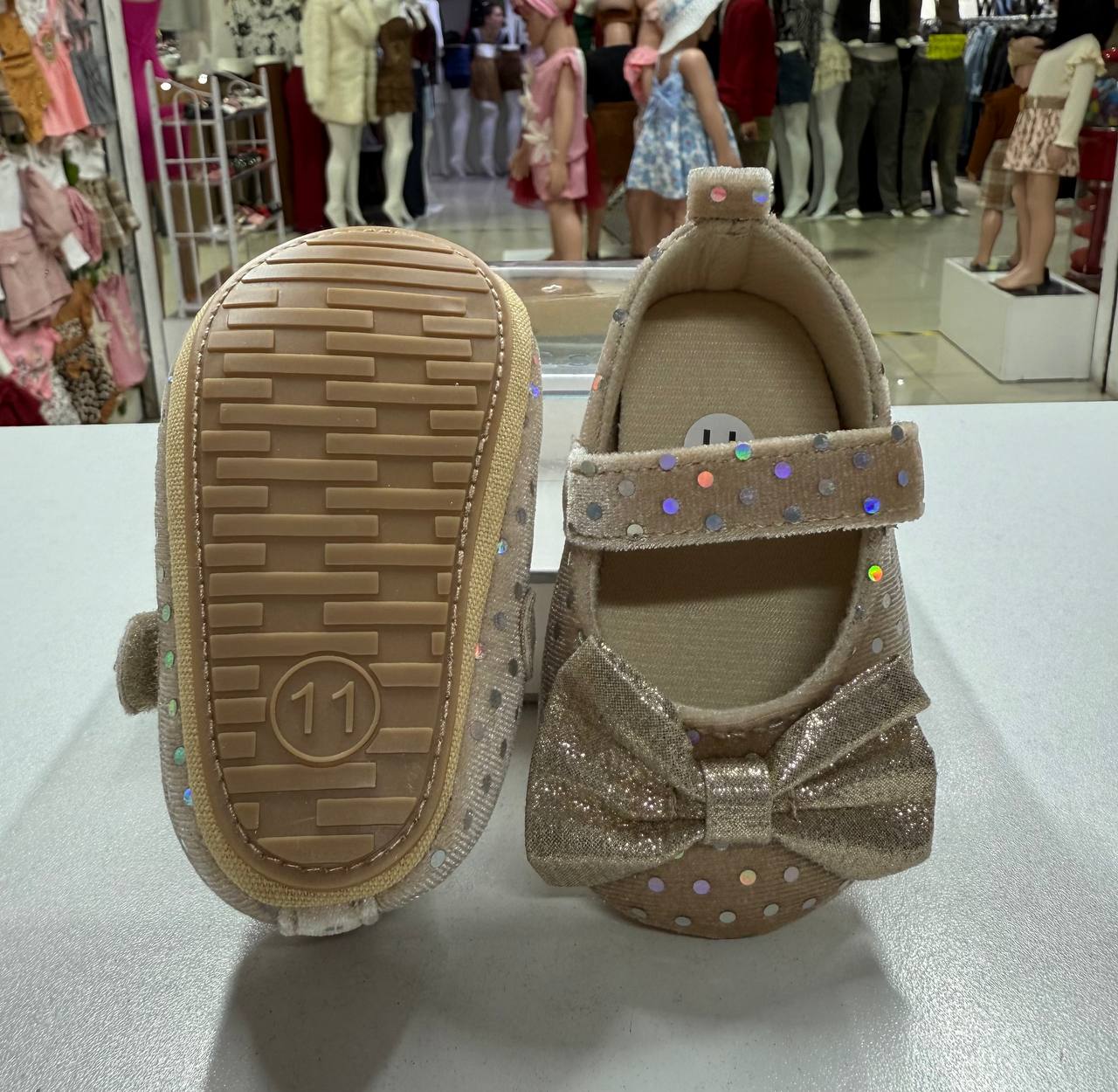 Zapatos Para Bebes Con Antideslizante De Tela Brillante Lazo Z12